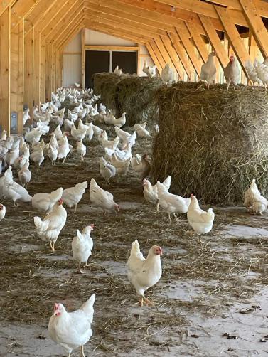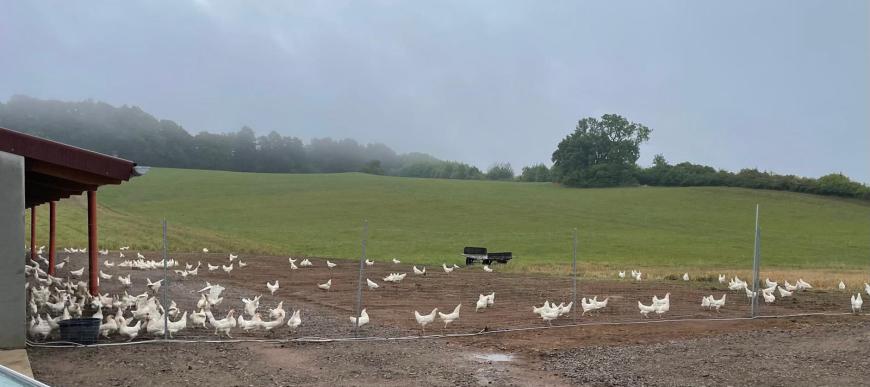 Im Sand scharren, nach Körnern picken und dann ein ausgiebiges Staubbad: So sieht das Leben unseres Bio-Huhns aus. Unsere Hühner sind vor allem frei und munter laufend in ihrem großzügigen Grüne Wiesen-Auslauf unterwegs. Bei schlechter Witterung können sich die Tiere in ihren eigenen Wintergarten zurückziehen, der ebenfalls mit unserem Stroh eingestreut wird. Für uns steht dabei die artgerechte und naturgemäße Haltung im Vordergrund.